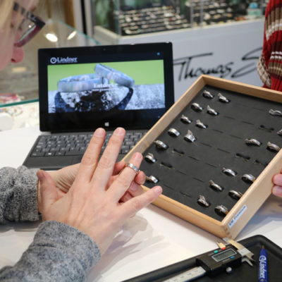 Zum Bestellen bzw. weiterer Information kommen Sie dann gerne zu uns- wir haben alle Profile, Materialen und können Ihnen so zeigen, wie sich der Ring wirklich am Finger anfühlt oder ob der Goldton zu Ihrem Teint passt. Wir kümmern uns auch um die korrekte Feststellung Ihrer Fingergrößen in Bezug auf genau diese Ringe, und nicht zuletzt um die Gravur der Ringe.