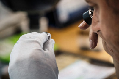Jeder einzelne Diamant wird von Hand sicher und sauber in den Ring eingearbeitet. Unsere Ringlieferanten beschäftigen dazu gelernte und langjährig erfahrene Steinfasser, welches eine zusätzliche Ausbildung des Goldschmieds ist.