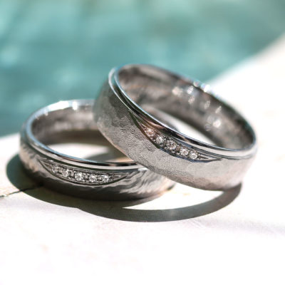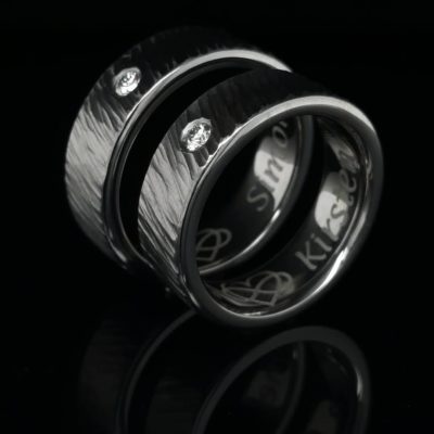 Außer einem Steinbesatz gibt es natürlich auch noch viele andere Möglichkeiten, Ringe ganz individuell zu gestalten. Durch eine andere Oberfläche wirkt ein Ring wieder ganz anders, ebenso gilt dies für die Breite, das gewählte Profil der Ringschiene und natürlich das Material: Die kühle Farbe von weißen Schmuckmetallen wie Platin, vielleicht noch in einer breiten, kantigen Form wird wohl eher als maskulin empfunden, während beispielsweise ein Ring mit gewölbtem Profil in einem warmen Roséton eher ein feminines Design darstellt.