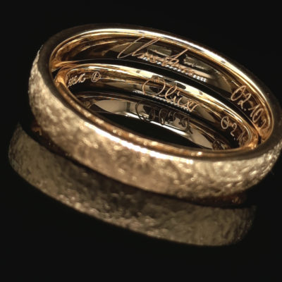 Gravur der eigenen Handschrift Sie haben sich für die Gravur der eigenen Handschrift in Ihre Trauringe entschieden? Die Handschrift des Partners im eigenen Ring ist ein ganz besonderes Bekenntnis zueinander und erinnert daran, dass man nie alleine ist, so groß die räumliche Distanz auch ist. Wie wird es gemacht? Sie schreiben Ihren
