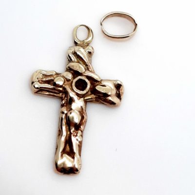 Bei diesem Kreuz wurde die verschlissene Öse und die Anhängerschlaufe am Kreuz verstärkt und alle Oberflächen gereinigt und poliert.
